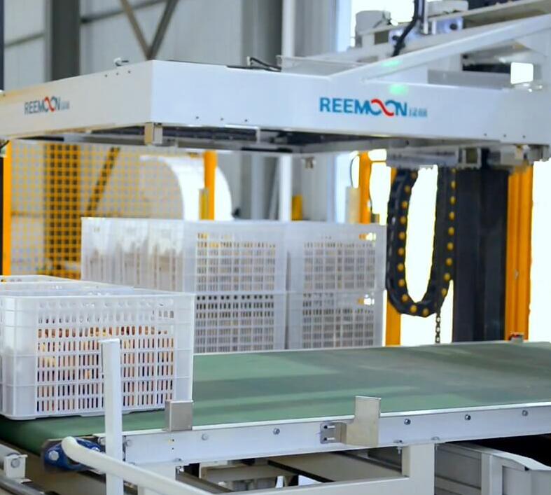 Reemoon robot depalletizing adopts a fully automated processing system, and the robot arm automatically, quickly, continuously and flexibly pours fruit.