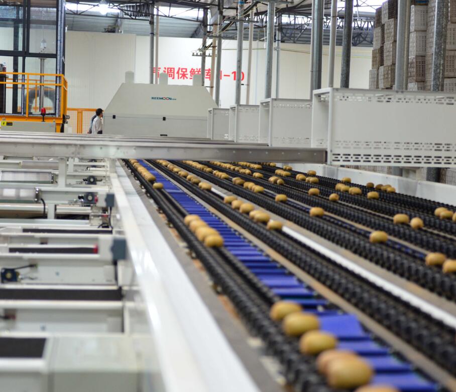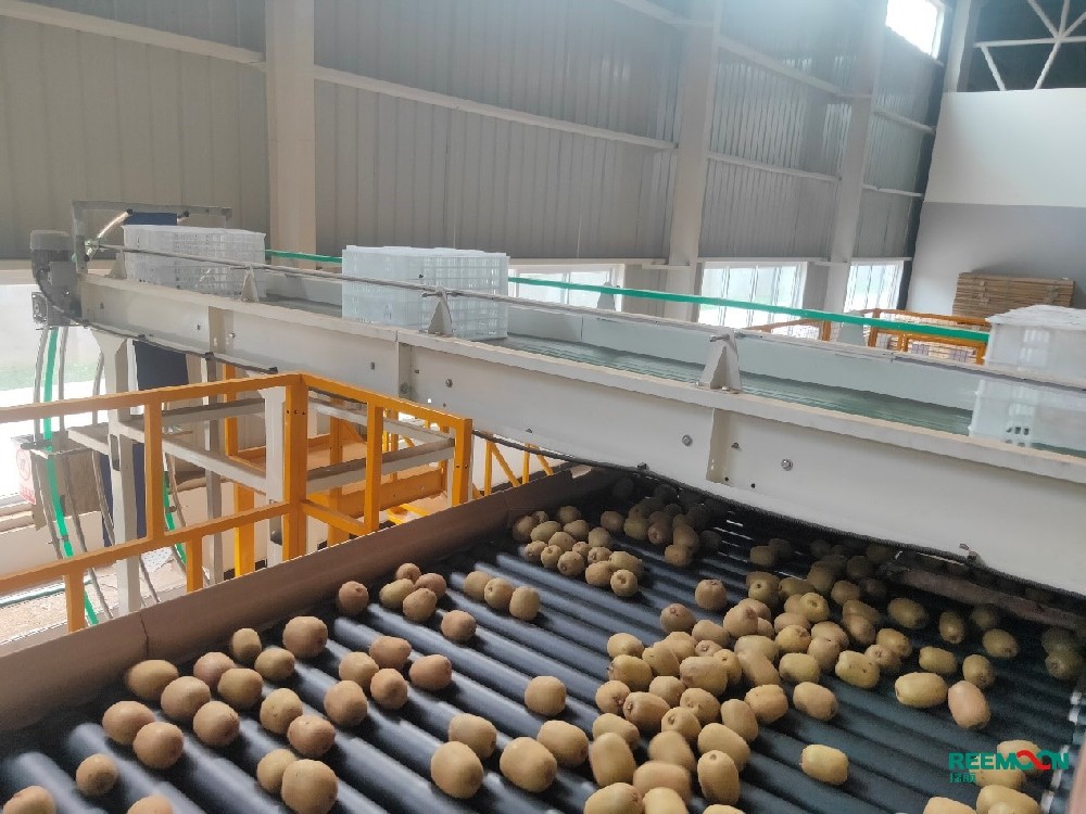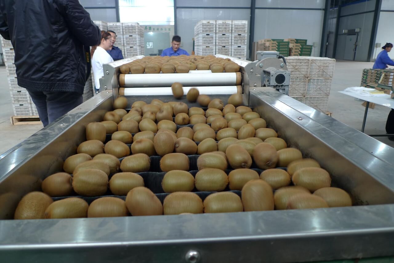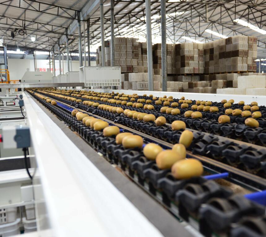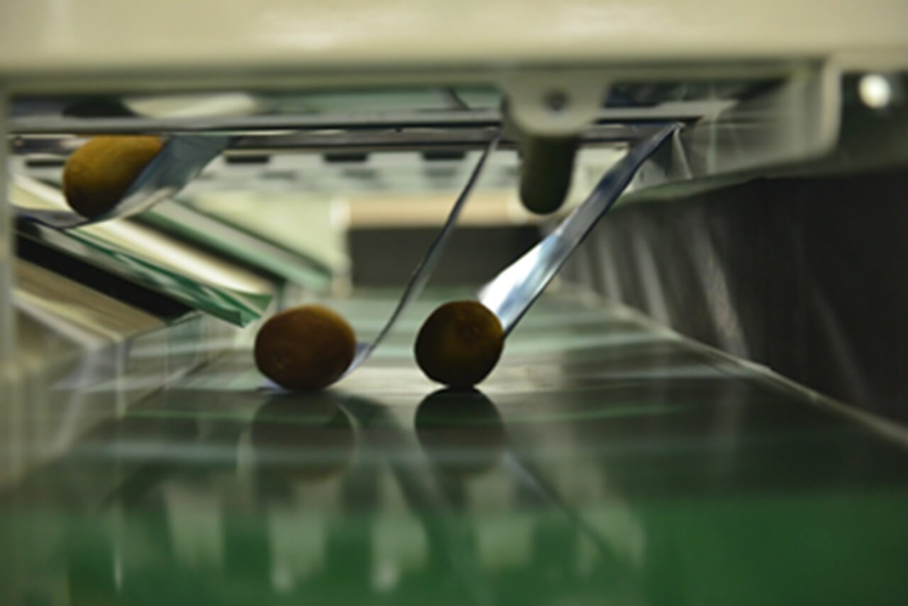 通過(guò)綠萌 Fruscan S7檢測(cè)技術(shù)對(duì)獼猴桃的大小、外觀進(jìn)行檢測(cè)識(shí)別,根據(jù)客戶設(shè)置的參數(shù),通過(guò)大數(shù)據(jù)分析進(jìn)行分選。把同一品質(zhì)的獼猴桃輸送到同一出口處進(jìn)行包裝。