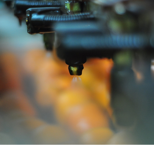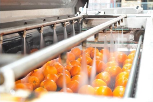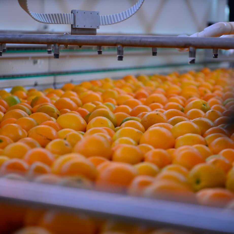 打蠟機將果臘霧化,均勻地涂抹在果皮表面,減少橙子水分的流失,延長貨架期。