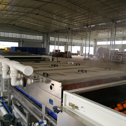 臍橙進入高壓清洗系統后將勻速轉動,接受高速輕柔水壓的沖洗,去除表皮的微生物和其他污漬。