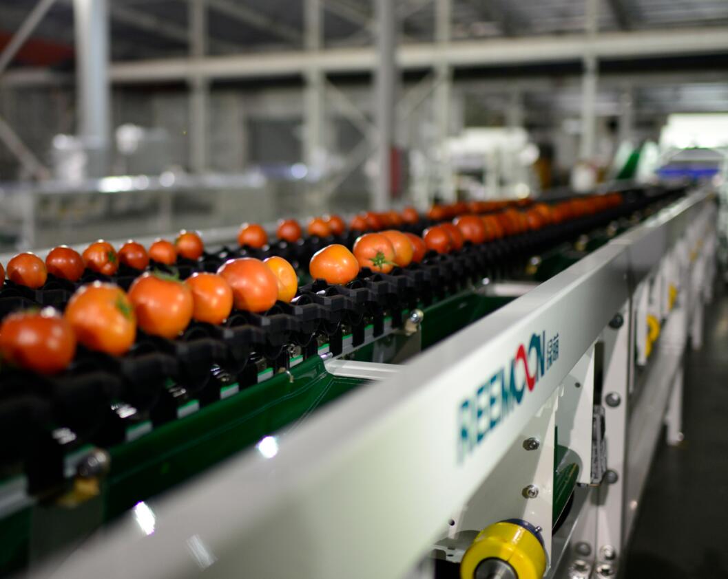 綠萌重量分選設備采用多點傳感接觸,根據西紅柿分選等級標準裝箱重量自動計量,確保每箱西紅柿大小的一致性。