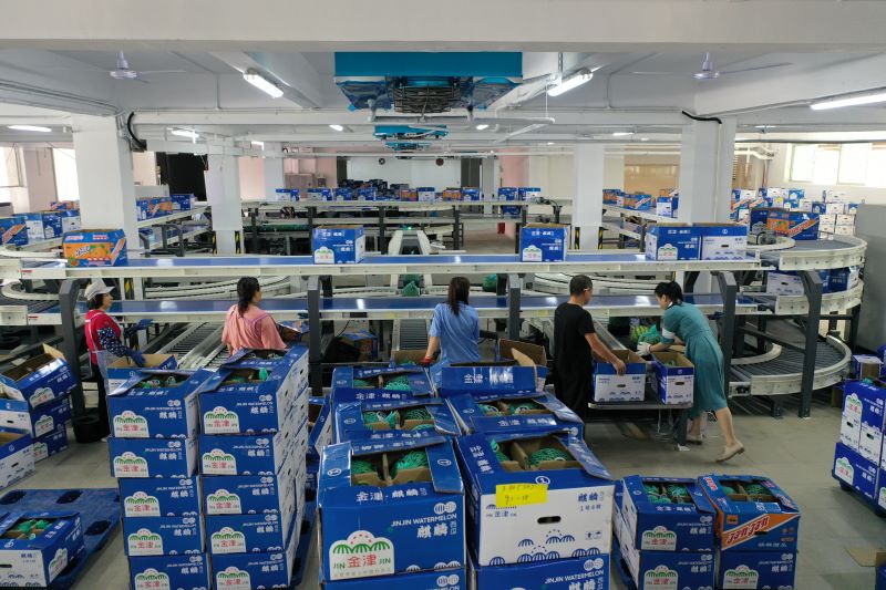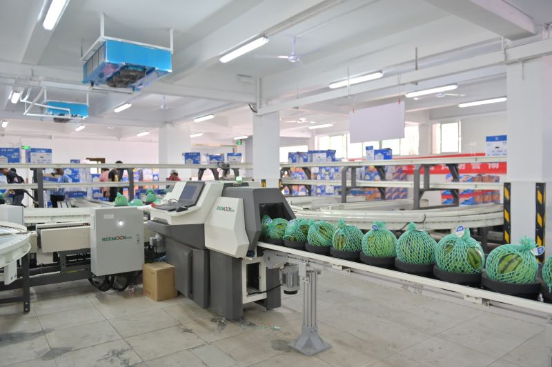 采用綠萌的核心技術對西瓜內部進行掃描檢測,無需切開西瓜,就能準確地識別西瓜的糖度,傳送系統將同一品質的西瓜輸送到同一出口進行包裝。